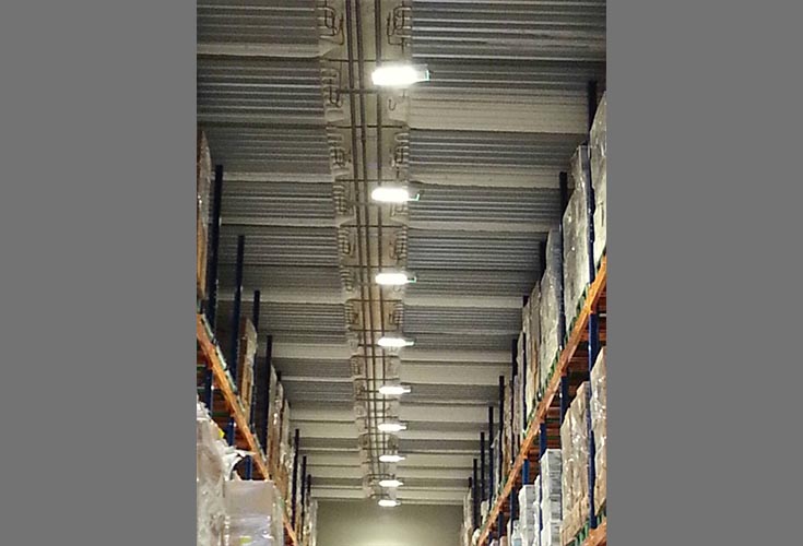 在這個挑高8米的冷凍倉儲案例中,傳統高壓鈉燈損壞率非常高,時常耗費許多人力成本重新安裝,例如:使用堆高機將貨物向上堆疊過程中,一不注意就碰撞到玻璃製的高壓納燈,或是高壓納燈耐不住低溫結霜壓力破碎,影響人身安全;並且傳統燈開啟到完全點亮需要一段時間,只能全天點亮,帶來高額電費支出…小小照明問題,其實影響整個工作效率。換裝ALTLED®的145瓦照明燈後,材質安全穩固且耐低溫;使用瓦數降低卻提升照明亮度,搭配LED即點即亮的特性達到節能減碳。省下的電力、人力、耗材…等費用,很快就回收安裝LED燈的成本,讓業主非常滿意。